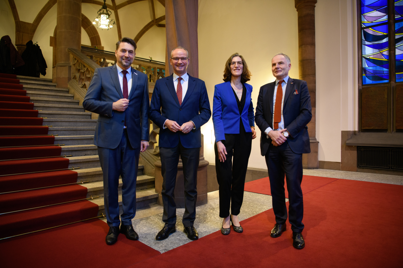 Oberbürgermeister Uwe Conradt mit dem Staatsminister für Europa Gunther Krichbaum, Politikwissenschaftlerin Claire Demesmay und dem französischen Generalkonsul Jérôme Spinoza (v.l.n.r.) - Jennifer Weyland