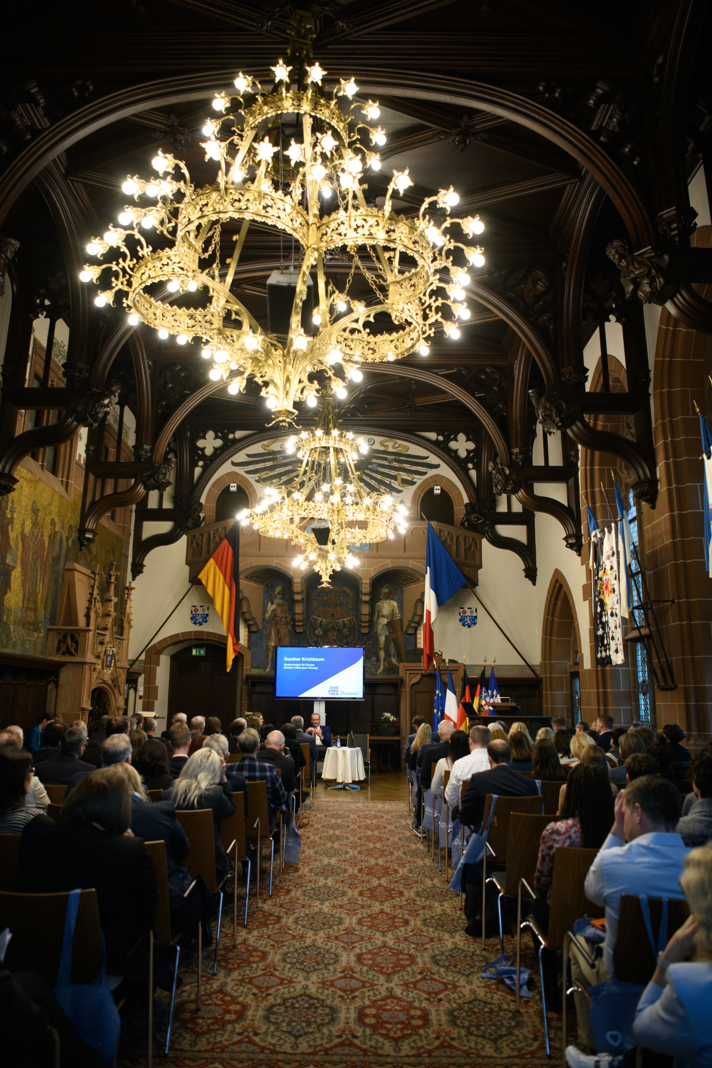 Über zentrale Zukunftsfragen Europas sprach der Oberbürgermeister mit dem Staatsminister für Europa, Gunther Krichbaum, und dem französischen Generalkonsul für das Saarland, Jérôme Spinoza, in einer Podiumsdiskussion. Themen waren unter anderem die Glaubwürdigkeit europäischer Abschreckung, Blockaden bei gemeinsamen Rüstungs- und Industrieprojekten sowie unterschiedliche strategische Herangehensweisen in Deutschland und Frankreich. Einigkeit bestand darüber, dass ohne konkrete Fortschritte in der deutsch-französischen Zusammenarbeit die europäische Sicherheits- und Verteidigungspolitik nicht gelingen kann.