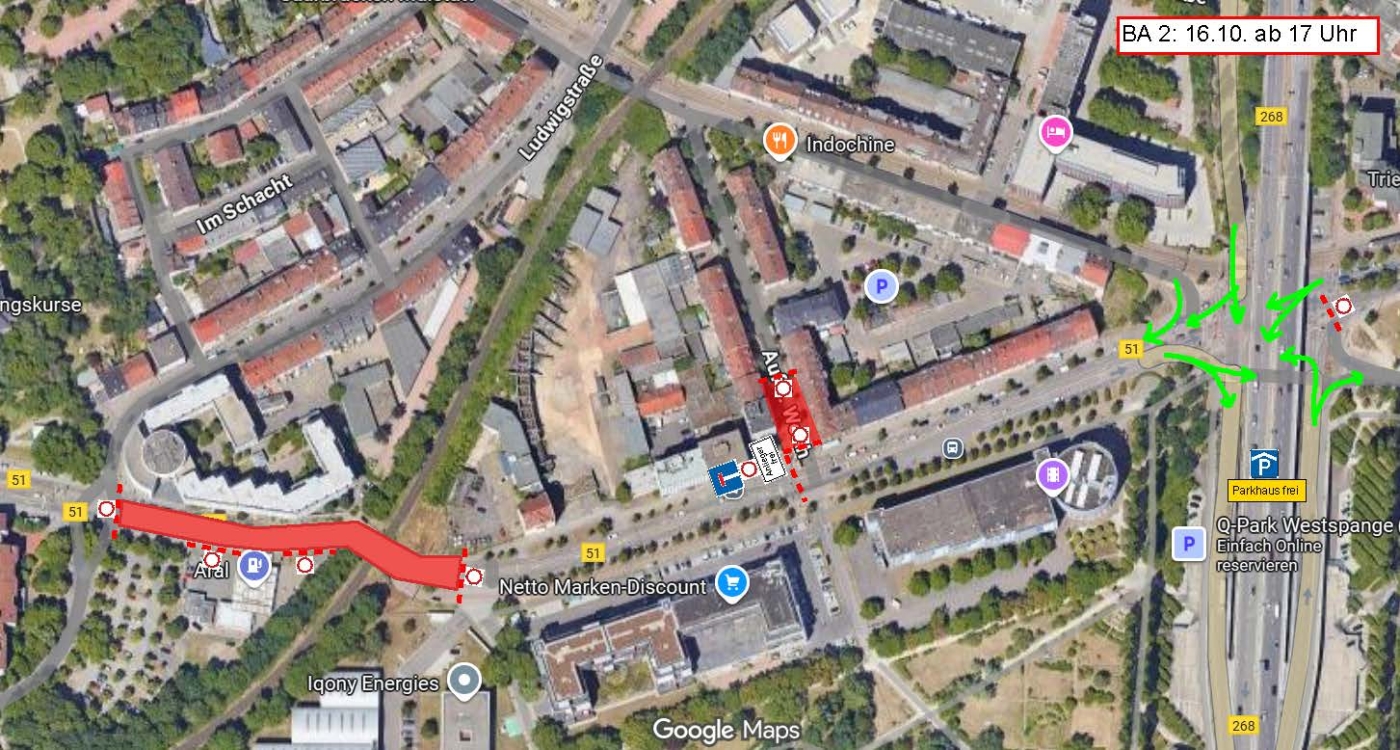 - Stadtauswärts: Weiterhin über die Trierer Straße in Richtung Ludwigskreisel möglich.